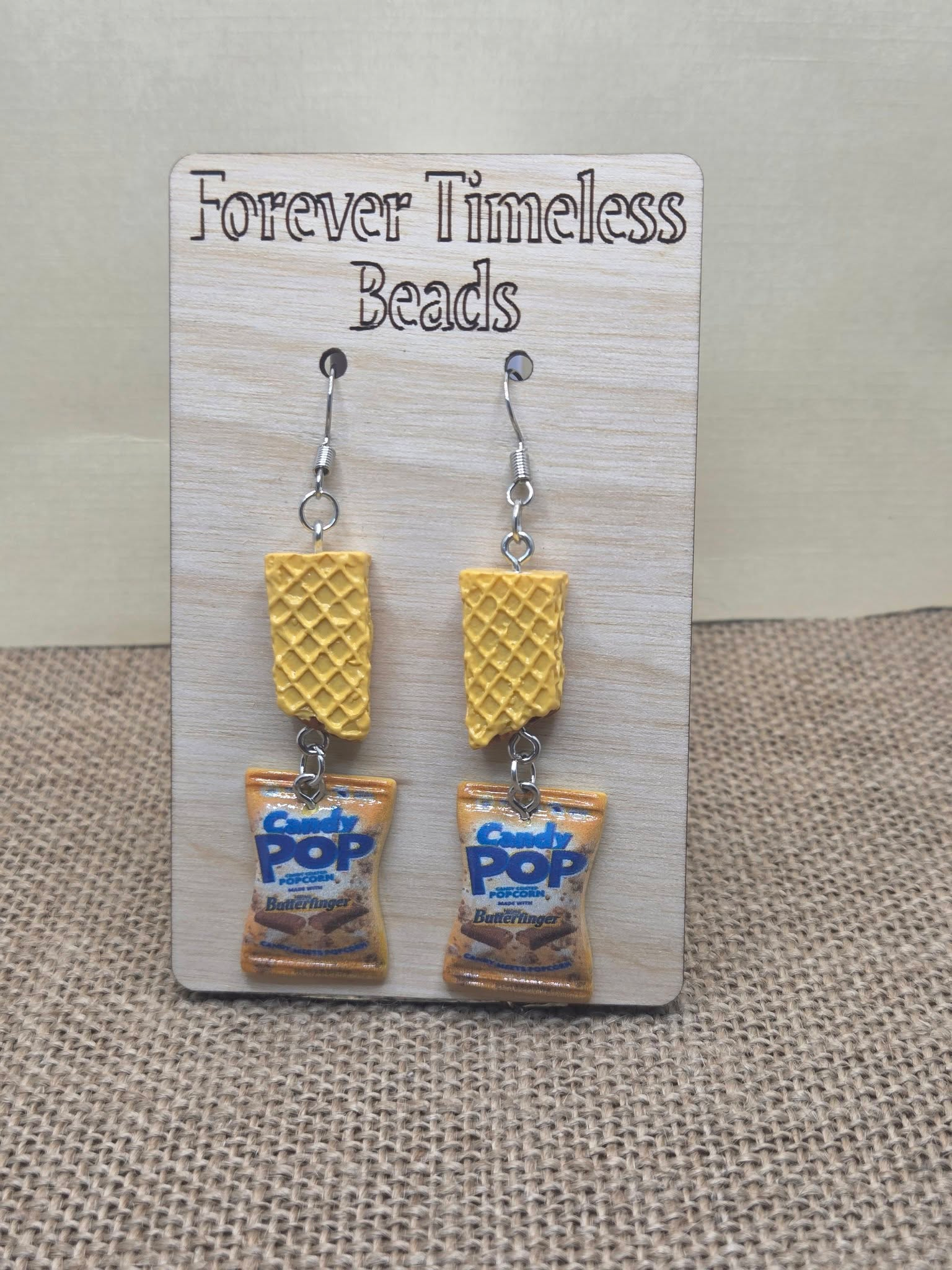 Celebrate your love for sweet and savory snacks with the Candy Pop Popcorn & Waffle Earrings! These charming accessories feature realistic miniature waffle pieces paired with tiny Candy Pop popcorn bags, making them a must-have for snack enthusiasts.
