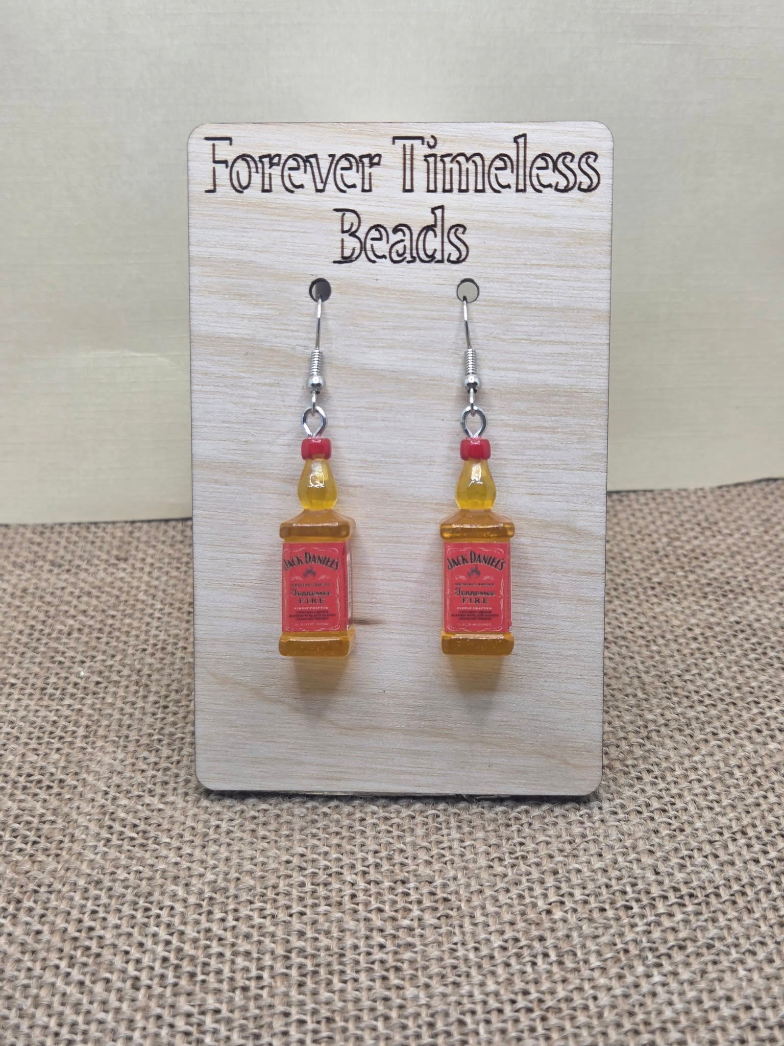 Turn up the heat with these bold Jack’s Fire Earrings! Featuring miniature, detailed bottles of Jack Daniel’s Tennessee Fire whiskey, these lightweight earrings add a fiery and fun edge to any outfit.