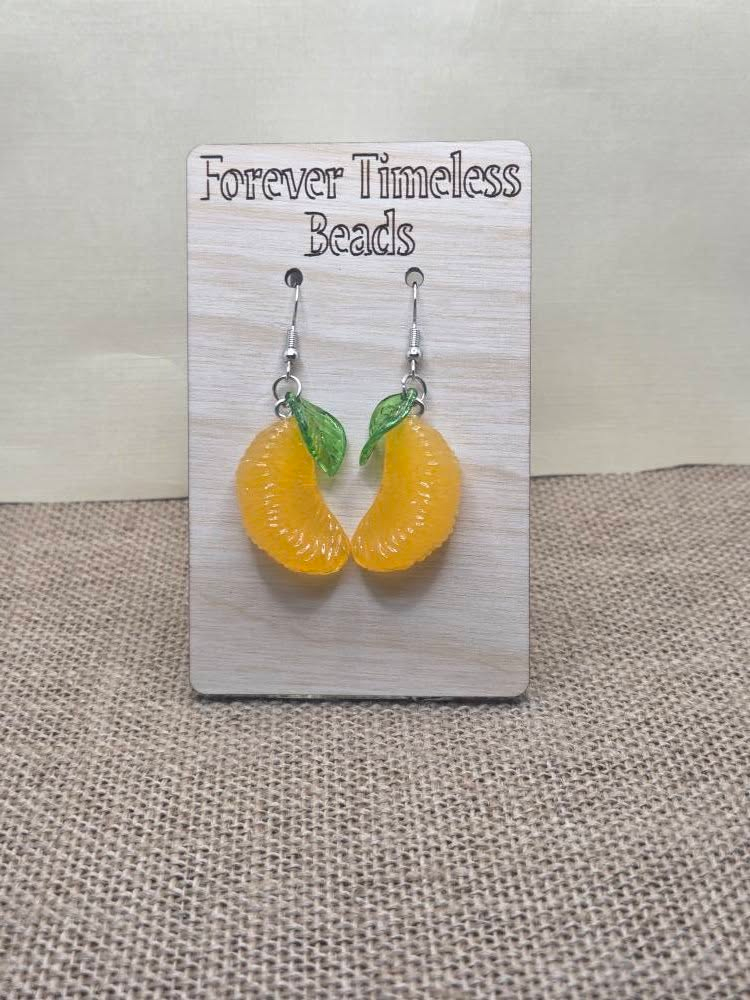 Add a burst of sunshine to your look with these charming mandarin orange slice earrings. Featuring realistic, glossy orange segments accented with vibrant green leaves, these earrings bring a fresh and fruity vibe to any outfit.
