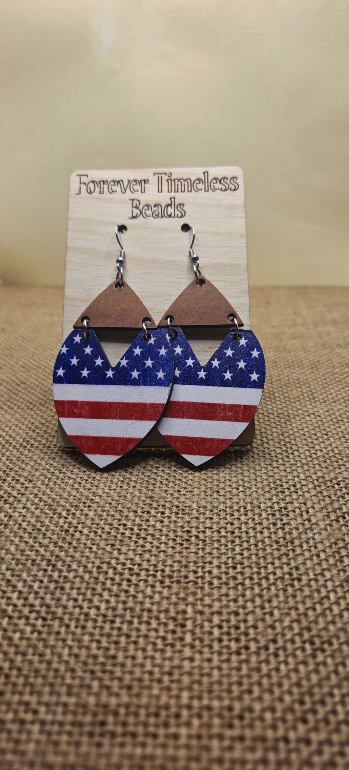 Show your American pride with these striking Patriotic Shield Wooden Earrings. Featuring a shield-shaped design adorned with the stars and stripes of the U.S. flag, these earrings combine bold patriotism with a stylish geometric flair. Lightweight and comfortable, they are perfect for everyday wear, patriotic holidays, or special events.