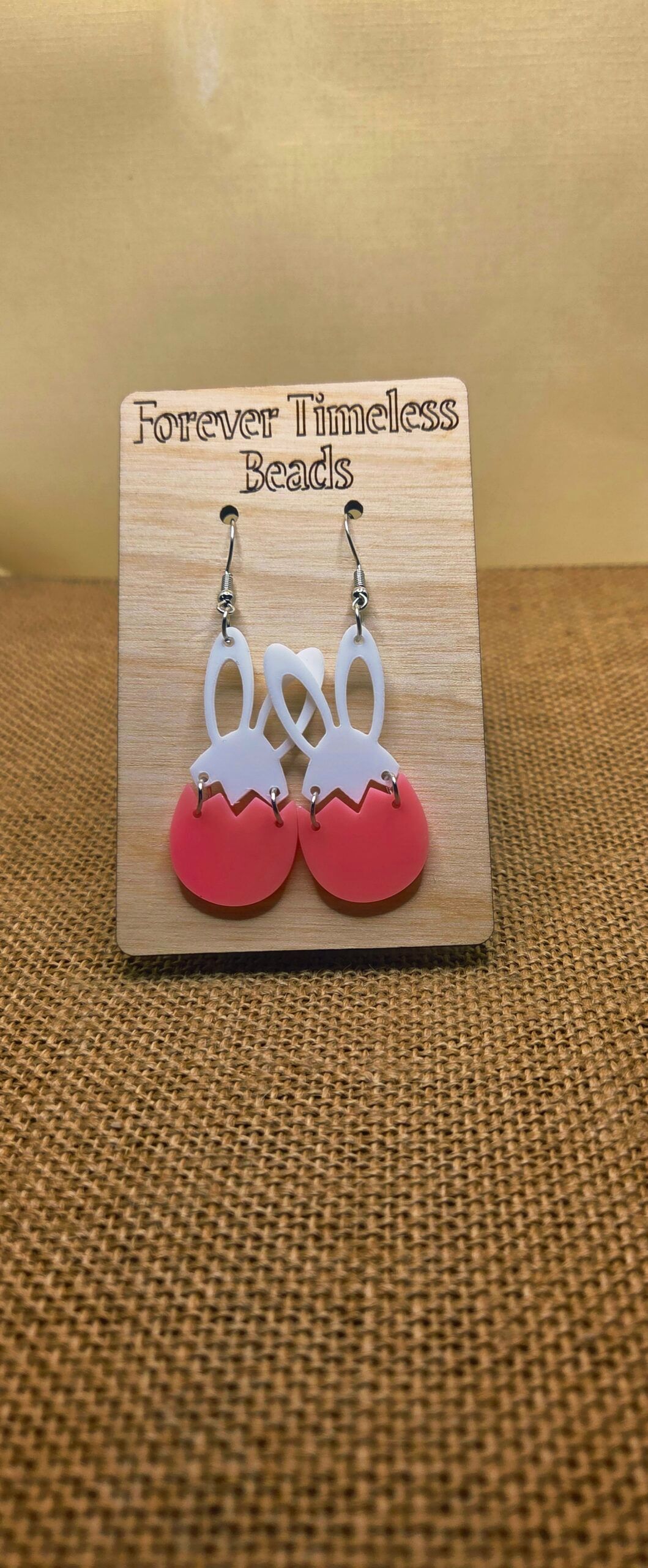 Celebrate spring with these playful acrylic earrings featuring a cute bunny peeking out from a cracked pink eggshell. The modern and lightweight design combines white and pink hues to create a fun and festive accessory perfect for Easter or everyday wear. These earrings add a whimsical touch to any outfit and are sure to bring smiles wherever you go.