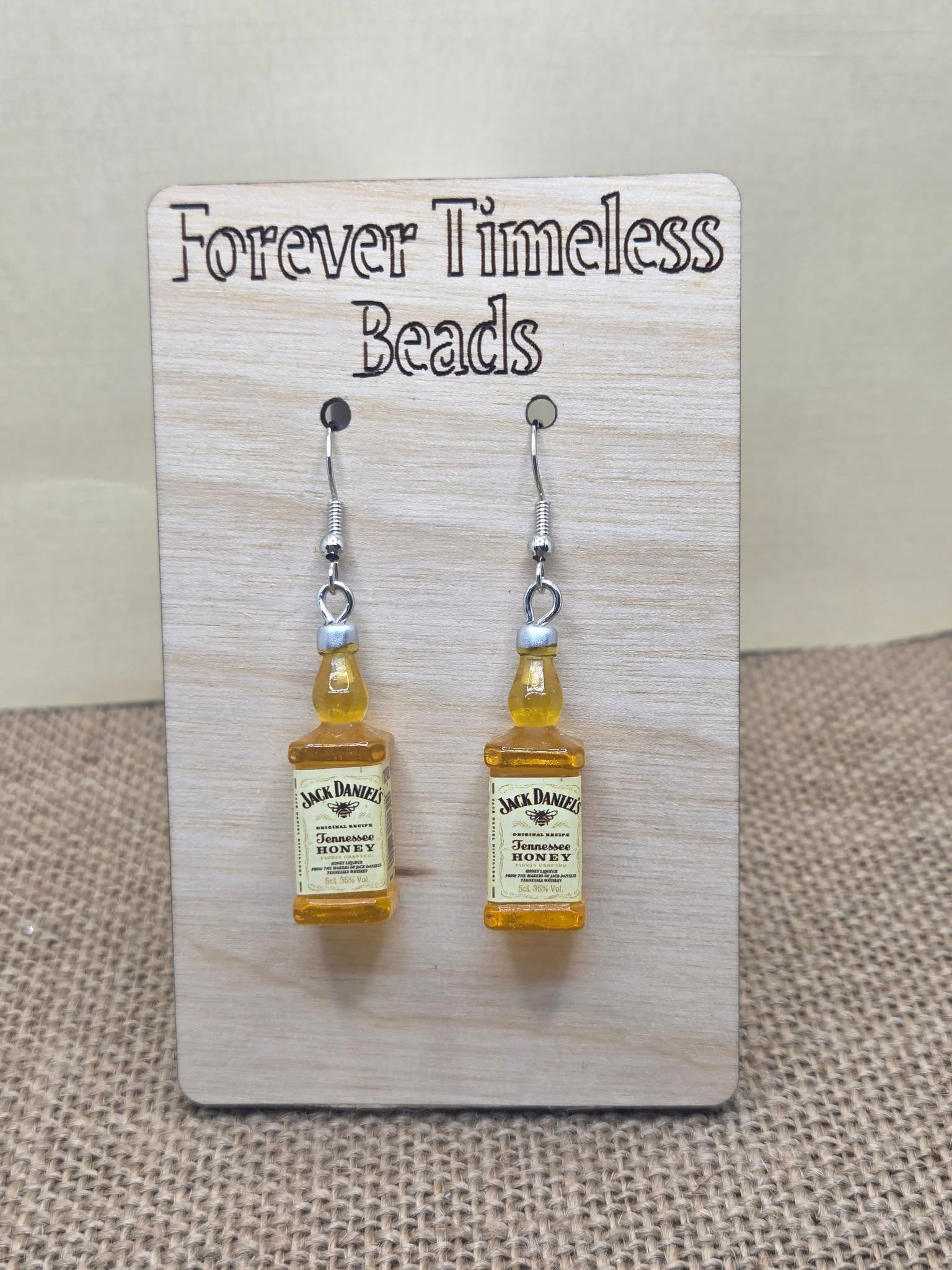Add a touch of smooth sweetness to your look with these charming Sweet Honey Jack Earrings! Featuring miniature, detailed bottles of Jack Danielโs Tennessee Honey whiskey, these lightweight earrings bring a warm and playful vibe to any outfit.
